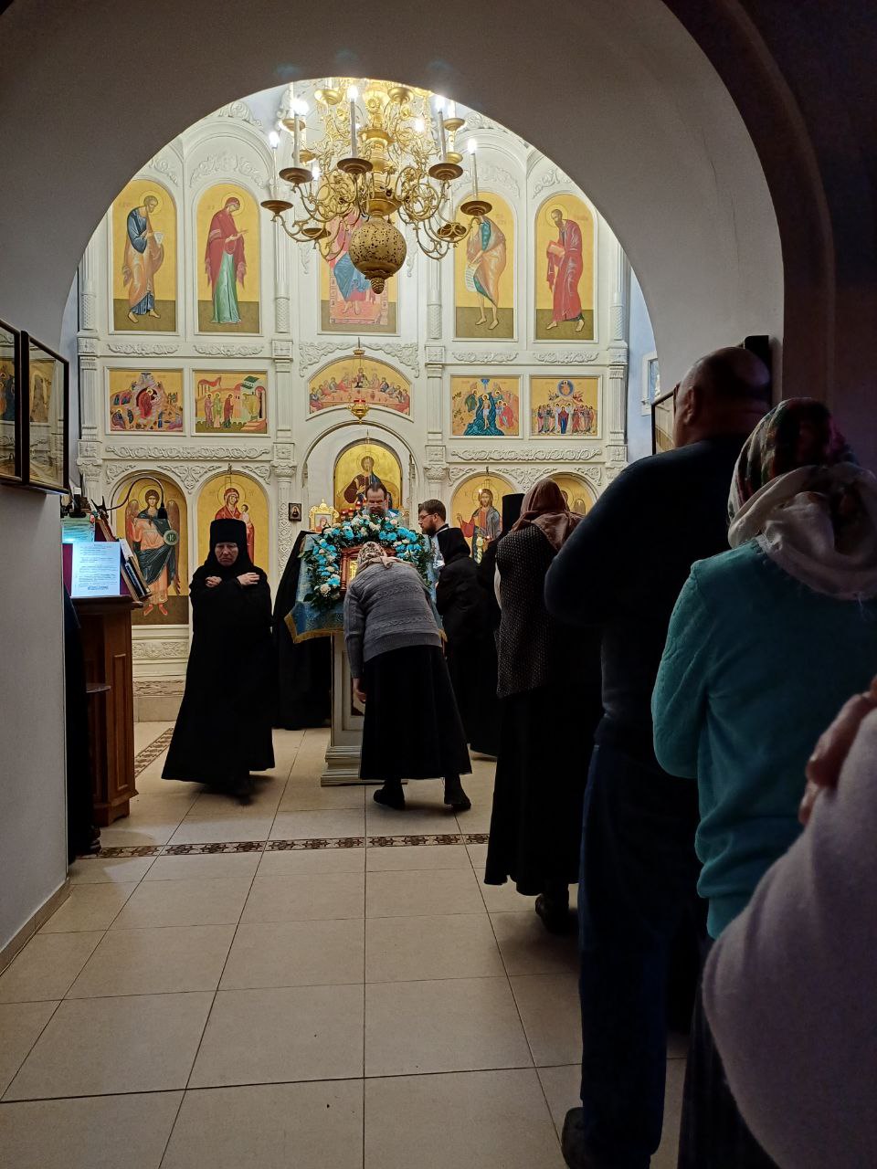 Устроив благолепно все, что нужно было для Ее славного введения во храм, все отправились в Иерусалим, отстоявший на три дня пути от Назарета. Достигнув Иерусалима, пошли к церкви, чтобы ввести в нее одушевленную Церковь Божию ― трехлетнюю Отроковицу, Пречистую Деву Марию. Лик девиц шел перед Нею с зажженными свечами, почему Св. Тарасий, Архиепископ Константинопольский, влагает сии слова в уста Св. Анны: «Ступайте, девы, со свечами предо мною и пред Богоотроковицею!» С кротостью и смирением Святые родители вели сами Дочь свою, дарованную им Богом. Множество соседей, сродников и знакомых следовали за ними, радуясь, и все со свечами в руках окружали Марию, как звезды светлую луну, на удивление всего Иерусалима. Св. Феофилакт описывает это шествие так: «Дщерь забывает дом отца Своего и приводится к Царю, возлюбившему красоту Ее, приводится к Нему с честию и блистательным сопровождением. Благолепно выходит Она из отеческого дома, со славою провожают Ее сродники, соседи и все други Ее, родителей. Отцы участвуют в веселии отца Ее, матери разделяют радость матери, отроковицы и девы, ликуя, предшествуют со свечами Богоотроковице, подобно кругу звезд, сияющему вместе с луною. Весь Иерусалим собрался глядеть на столь необыкновенное, новое шествие трехлетней Отроковицы, облеченной такою славою и провожаемой с светоносною почестью. «И не только жители земного Иерусалима, но и граждане небесного, святые Ангелы, стеклись, чтоб видеть славное введение Пресвятой Девы Марии, и увидев оное, изумились, как поет Св. Церковь: «Ангели, вхождение Пречистыя зряще, удивишася: како Дева вниде во Святая Святых!» Невидимый лик бесплотных духов, соединившись с видимым ликом чистых дев, шествовал вместе с ними. Так, по повелению Господа, окруженная ими, как избранный сосуд Божий, Мария введена во Святилище. Св. Георгий, Архиепископ Никомидийский, так о сем упоминает: «Когда родители вели Деву к дверям церковным, к ним присоединились Ангелы и вместе с ними Ее окружали. Хотя Ангелы и не ведали тогда силы таинства воплощения, но как слуги Господа Бога, по Его повелению, служили Богоотроковице при Ее входе во Храм. Они удивлялись Ей, как избранному сосуду добродетелей, носящему знамение чистоты вечной и видели, что плоть Ее была такова, что никакая нечистота греховная не могла к Ней приблизиться, и так, исполняя волю Господа, совершали повеленное им служение». Вот с какою почестью и славою не только от людей, но и от Ангелов, непорочная Отроковица провождаема была в церковь Божию. И ветхозаветный Кивот, содержавший в себе манну, будучи еще только прообразованием Пречистой Девы, внесен был в Скинию Сионскую с великою почестью пред всем собравшимся Израилем: тем славнее надлежало быть пред лицом собранных Ангелов и человеков введению Преблагословенной Девы, сего одушевленного Кивота, Которому предназначено было вмещать в себе манну – Христа.