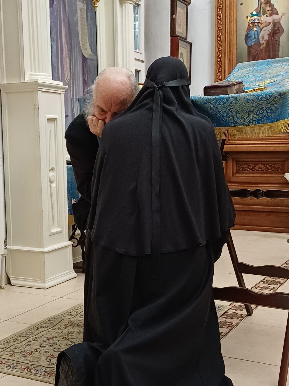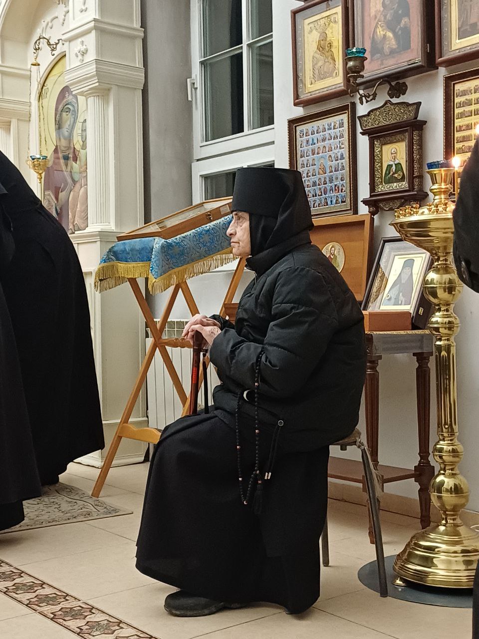 Тот же Епифаний говорил, что Пречистой Деве от церкви давалась пища, как и прочим девицам, но ее съедали странники и нищие. А Сама Она, как воспевает Св. Церковь, питалась хлебом небесным. И Св. Герман повторяет то же: «...Пребывая во Святая Святых, Она принимала сладкую пищу от Ангела». Подобно и Св. Андрей Критский: «...Живя как в чертоге, во Святая Святых, чудную и нетленную пищу вкушала!» Говорится также, что Пречистая Дева жила во внутренней Скинии, называемой Святая Святых, находящейся за второй завесой, а не в обители девиц, и это предание должно разуметь так: хотя и было в обители девиц для Нее определено место, а во Святая Святых позволялось Ей ходить только для молитвы, но обучаясь Писаниям и рукоделию, Она более упражнялась в молитве, чем в рукоделии. Целые ночи и большую часть дня обыкновенно проводила Она в молении и на молитву входила во Святая Святых, а рукоделием занималась в Своем покое, потому что не позволено было вносить с собою какую-либо работу во внутренность Храма. Таким образом, большую часть Своего пребывания при церкви проводила Она в молитве, за второю завесою во внутренней Скинии, редко и на малое только время выходя оттуда в Свою келью. Потому-то Учители церковные согласно говорят, что Пречистая Дева жила до двенадцатилетнего возраста во Святая Святых.